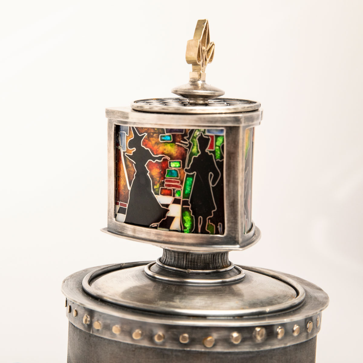 These are examples of Cloisonné and Metalsmith art objects created by master jeweler James Carter. Some of these items are available for purchase and others strictly as part of renowned art gallery collections.